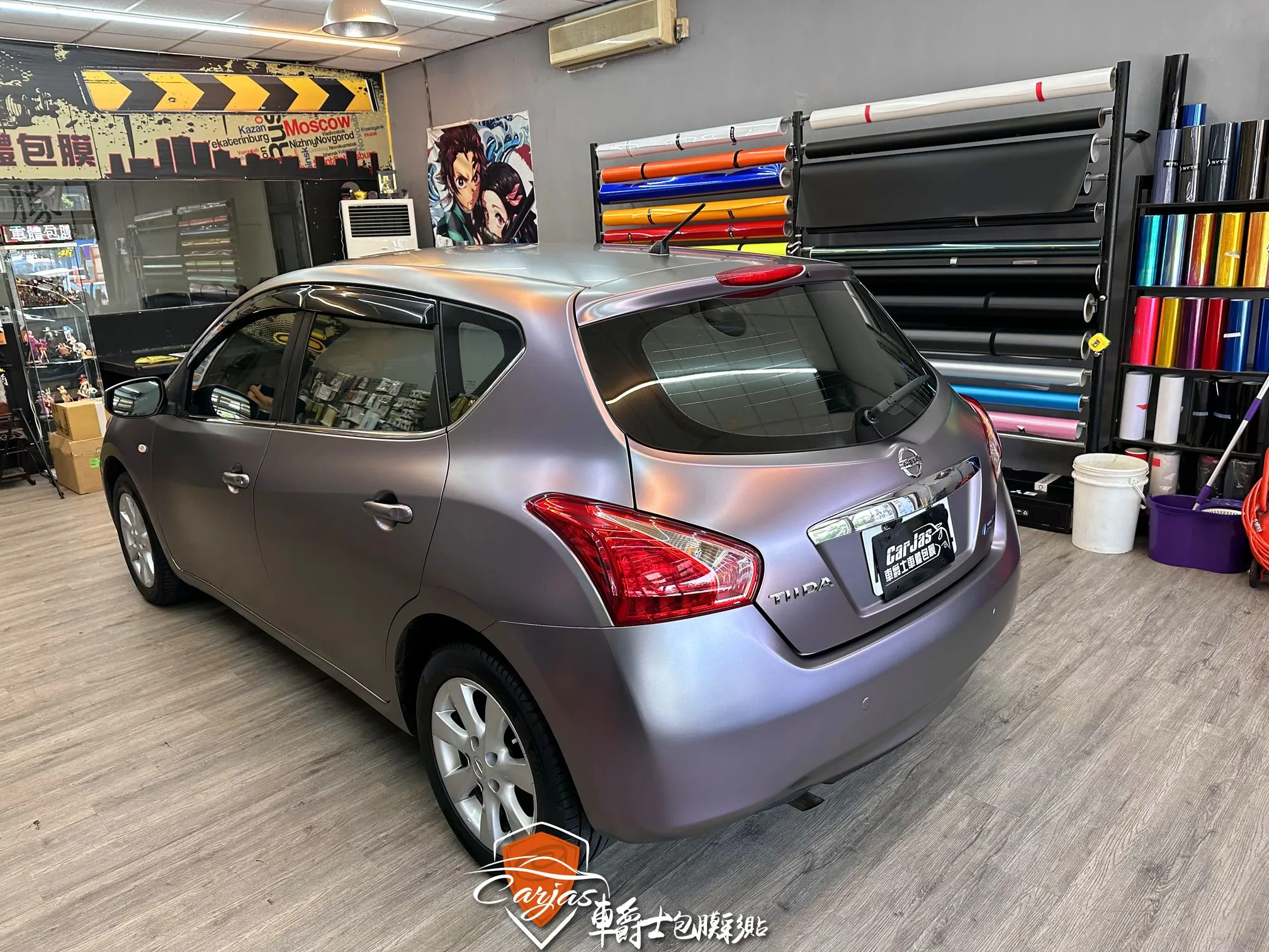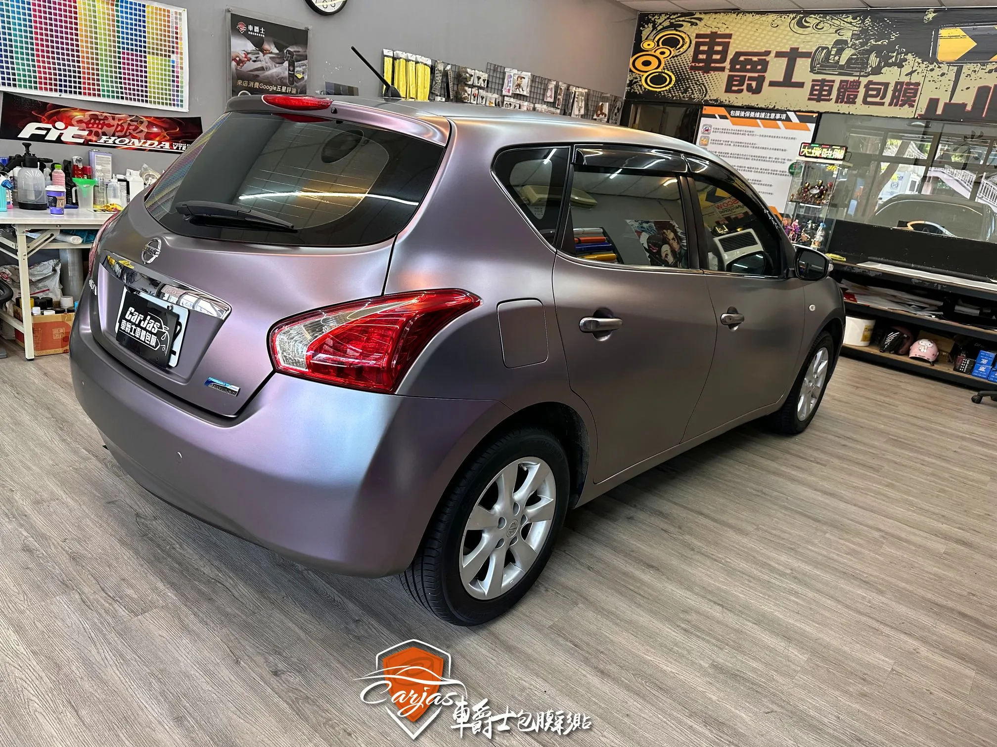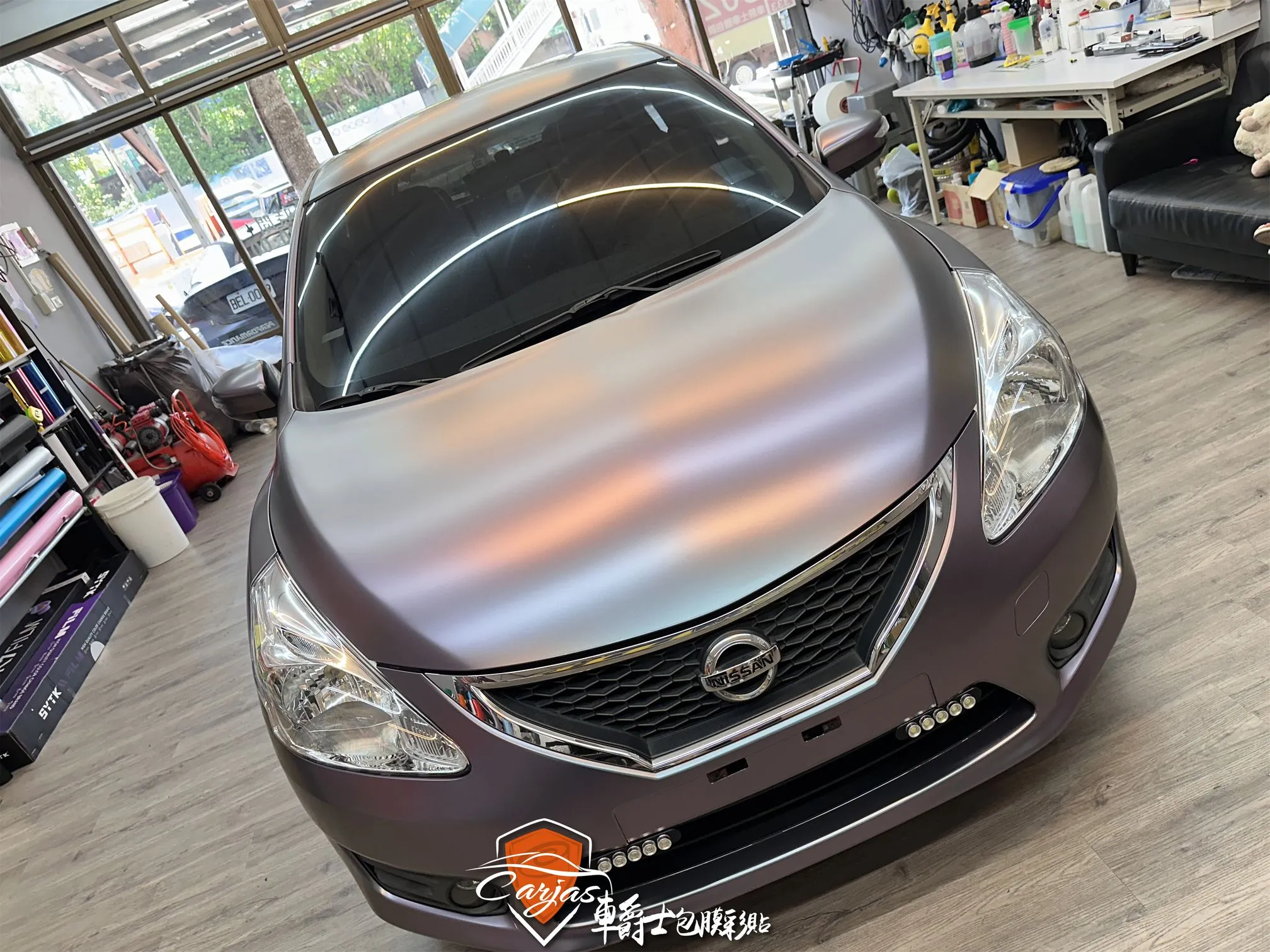 【車款】NISSAN TIIDA 【施工項目】消光綢緞灰紫全車改色包膜