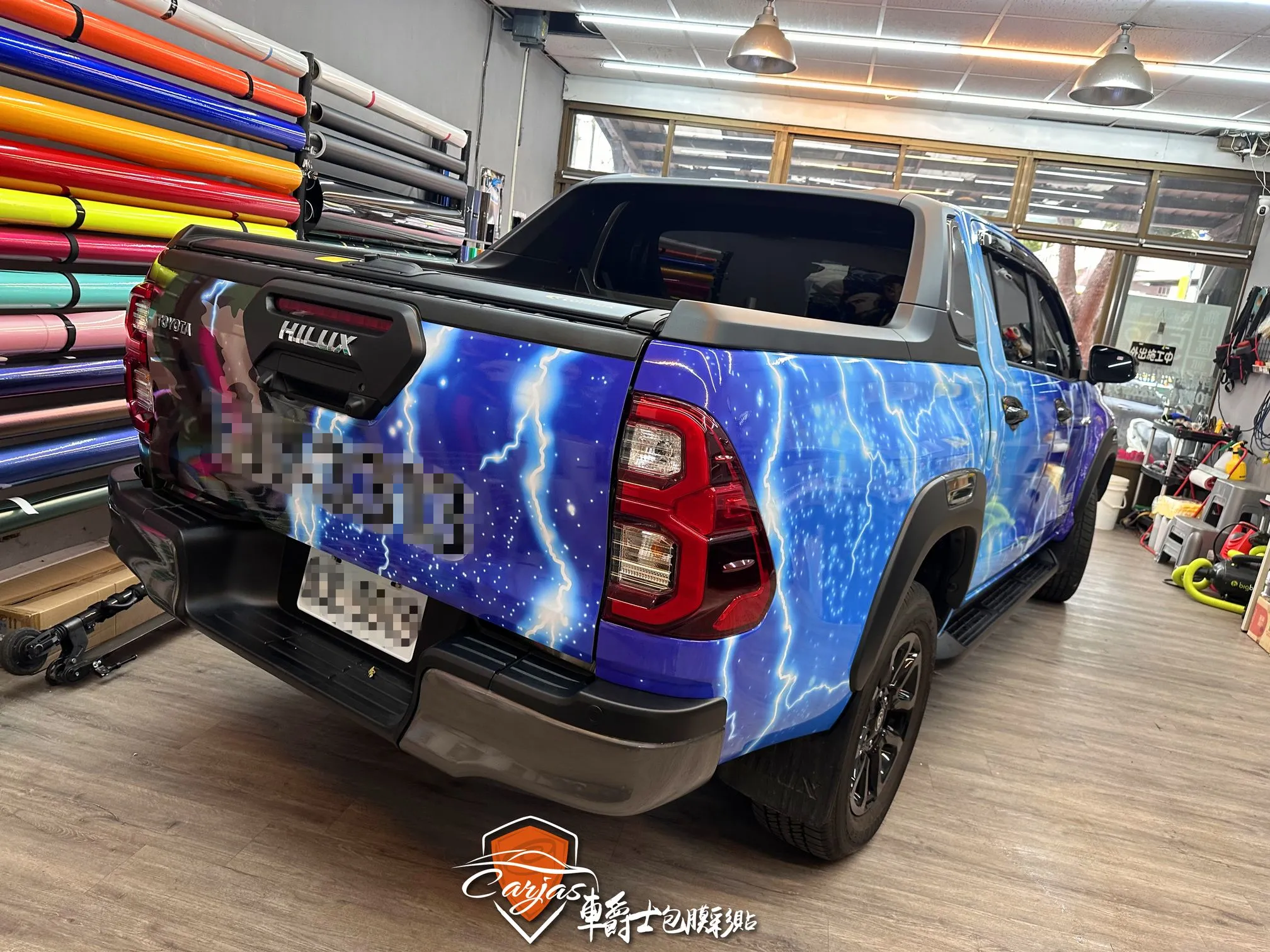 首頁 > 客戶成果 > 車體包膜 | 全車改色膜 > TOYOTA HILUX 全車客製化迷彩、閃電星空彩貼包膜